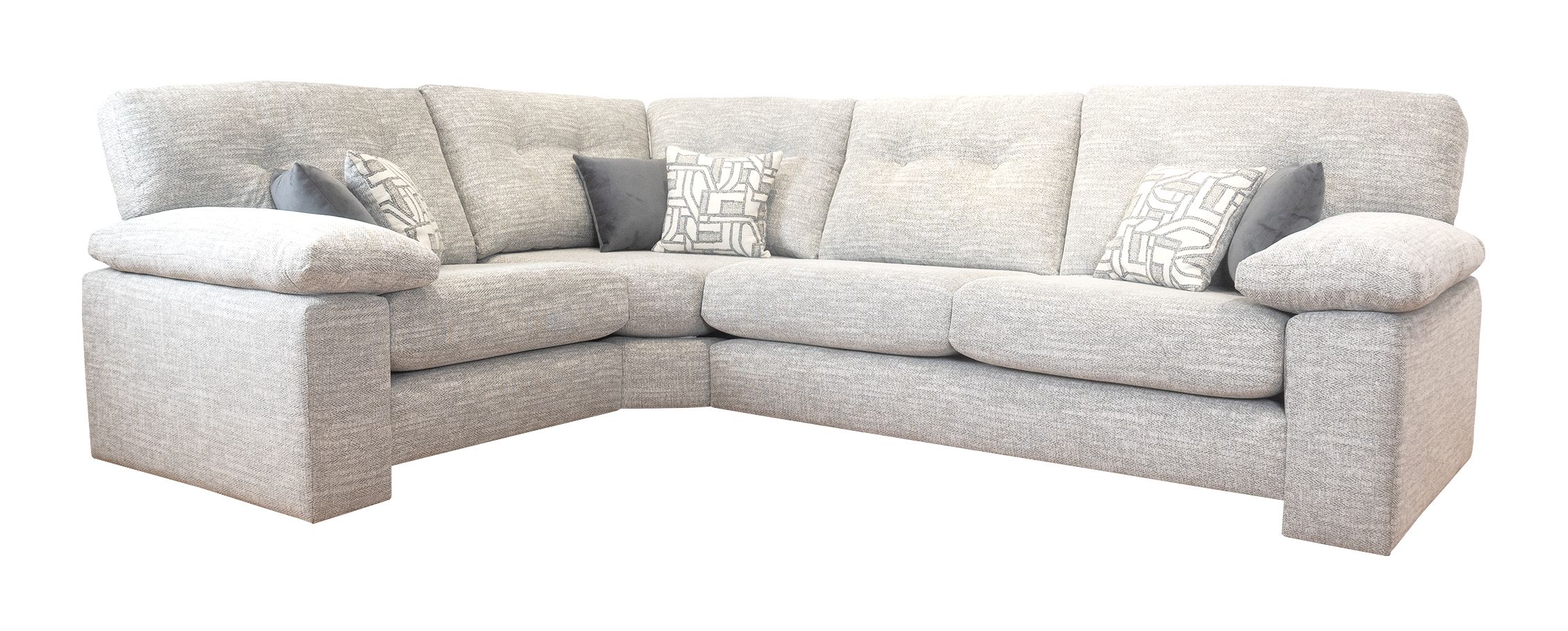 Contemporary design made for relaxation, with it’s deep cosy seats and soft arm bolsters offering plenty off space to stretch out in comfort. The Megan’s on-trend design of floating seating area nestled between two strong cradling arms. The beautiful soft chenille fabric is complimented by luxurious velvet and modern geometric design scatter cushions which will make a striking statement in any style of home.