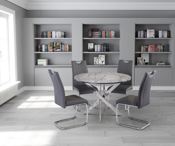 1.07M Round Dining Table - Grey Marble / Chrome Legs