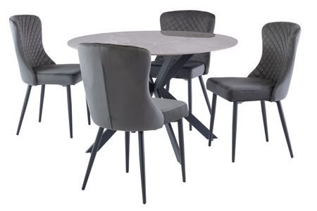 The Talia Grey Dining Table will make a design statement in any kitchen or dining space. Superbly crafted with a polished grey Sintered Stone top and a contemporary black powder-coated stainless steel design-feature base. This table comfortably seats up to 4 people and works exquisitely with any of our expertly curated dining chairs.