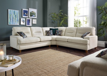 The Trieste collection is a contemporary design offering comfort and style, upholstered in a luxurious soft chenille. Wide arms and divided lumber gives the sitter superior support. The large corner allows the whole family to relax together, elegant printed velvet scatters add the finishing touch.