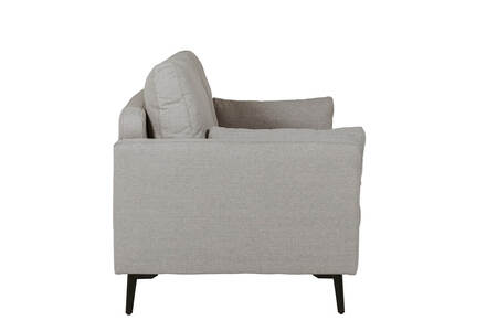 Raven 2 Seater Sofa CRIB 5 in Greige—a perfect fusion of style and safety. Sleek black powder-coated metal legs provide stability, while woven textured poly fabric ensures durability. With a foam and spring seat and plywood frame, comfort is guaranteed. The universal corner design allows the ottoman to be connected on either side with crocodile clips. Elevate your living space with the Raven Sofa—a blend of style and versatility. Designed with safety in mind, the Raven 2 Seater Sofa CRIB 5 ensures compliance with fire safety standards, offering peace of mind for your home.