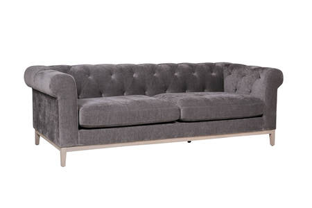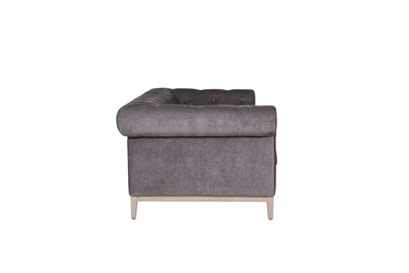 Tate 3 Seater in Grey – a contemporary twist on the Chesterfield design. Featuring pocket sprung seating with foam encasement, it ensures comfort and support. The solid wooden frame and legs, finished in washed oak, add durability and style. Plus, with the legs and frame fully assembled, setting up the Tate is a breeze, bringing instant sophistication to your space.
