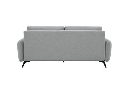 Barnaby Fixed 3 Seater in Grey features a sleek and modern design with black powder-coated legs and loose back cushions for added comfort. The pocket-sprung seating and solid wooden frame ensure durability and support, making it a stylish and practical addition to any living space.