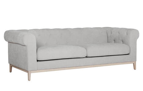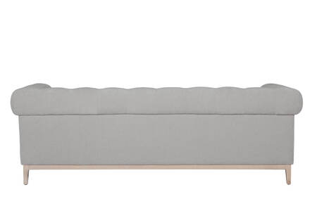 Tate 3 Seater in Natural – a contemporary twist on the Chesterfield design. Featuring pocket sprung seating with foam encasement, it ensures comfort and support. The solid wooden frame and legs, finished in washed oak, add durability and style. Plus, with the legs and frame fully assembled, setting up the Tate is a breeze, bringing instant sophistication to your space.
