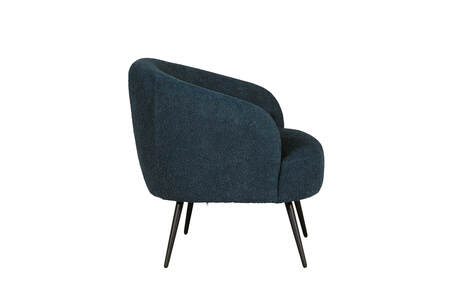 Shelbie Accent Chair in Navy – a cosy and stylish addition to any room. Upholstered in soft textured boucle fabric, this chair offers both comfort and sophistication. With its sleek black powder-coated legs, the Shelbie Accent Chair adds a modern touch to your décor.