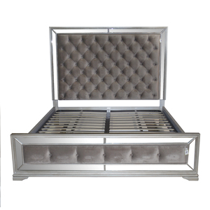 The Jessica exudes style and luxury. Hand crafted from eucalyptus, it features mirrored facing panels and deep buttoned head and foot board - this bedroom collection will make you feel like royalty.