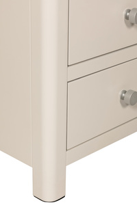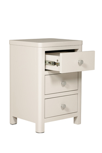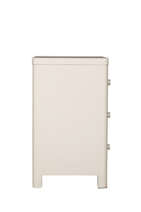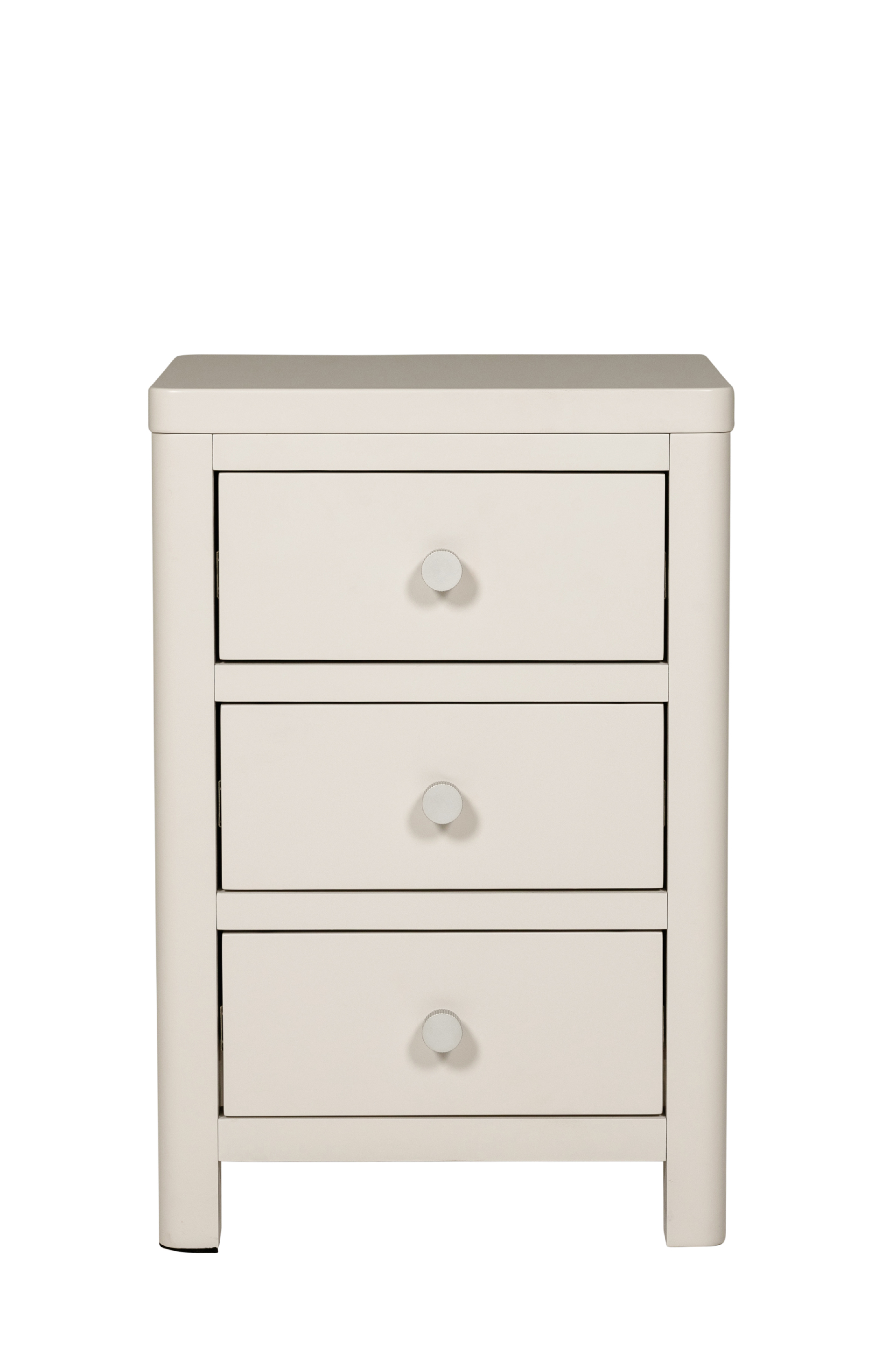Freya Bedside Table in Natural – a stylish and versatile addition to your bedroom decor. With its soft neutral painted finish, this bedside table effortlessly complements any decor style. Featuring smooth round edges and flush sides and tops, it boasts a clean and modern design that adds elegance to your space. The addition of matte silver round handles adds a touch of sophistication to its aesthetic.