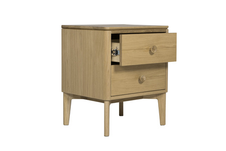 Introducing the Hadley beside by VIDA, an excellent addition to any bedroom. This piece is constructed with a sturdy oak and oak veneer frame with curved edges for a modern, Scandi-inspired look that''s sure to please. The two generous drawers offer plenty of deep storage space with a soft close feature.