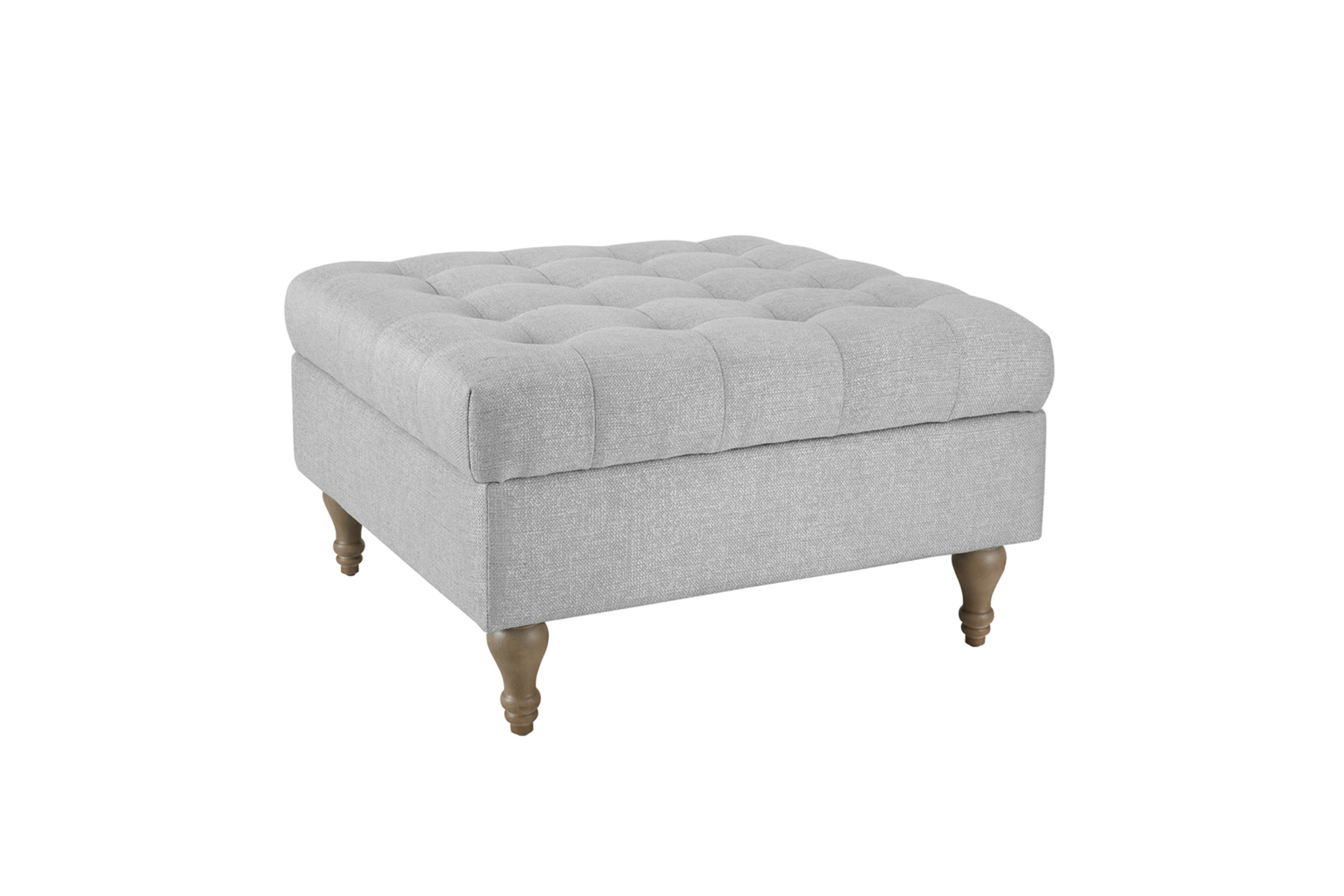 Abbott Button Top Storage Ottoman in Light Grey combines style and functionality with its elegant tufted design and practical storage space. Featuring turned wooden legs, this ottoman adds a touch of sophistication to any room while providing a convenient place to store your essentials.