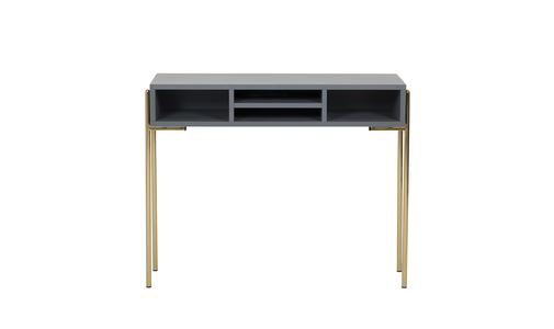 Natural oak melamine, powder-coated black metal legs, black hardware and accents.