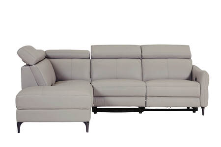Nico Corner Group Electric Recliner LHF in Stone offers comfort with electric reclining and a single motor. The solid wooden frame ensures durability, while integrated USB and USB-C ports provide convenient device charging. Its elegant stone upholstery complements modern decor.
