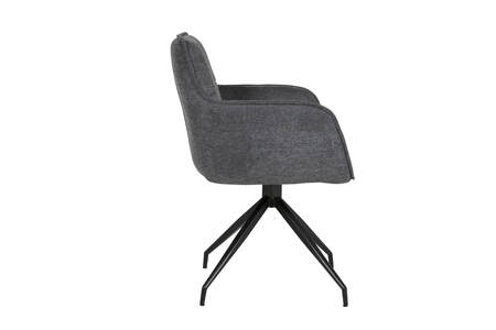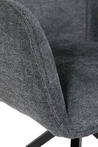 Theo Dining Chair in Charcoal – a sleek and modern addition to your dining area. Upholstered in flat weave fabric, this chair exudes contemporary elegance and comfort. Featuring a black powder-coated metal frame, the Theo Dining Chair offers sturdy support with a touch of sophistication. Its swivel base adds functionality and versatility, allowing for easy movement and comfortable seating.