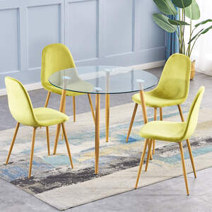The Oslo Dining Furniture features a range of modern tables and chairs. The chairs have a velvet fabric finish.