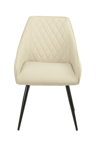 The Gabriel Dining Chair showcases a sleek design, featuring sturdy black legs that provide reliable stability, while its refined silhouette adds a contemporary touch to any dining setting.