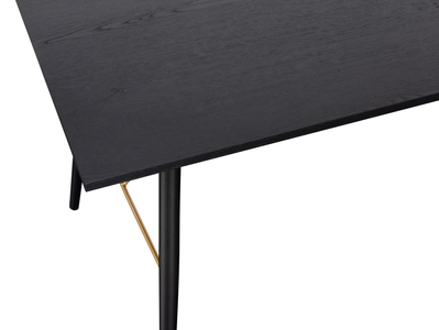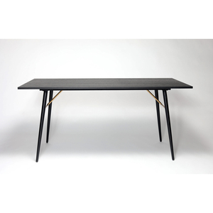 Black oak melamine, powder-coated black metal legs, copper metal accents.