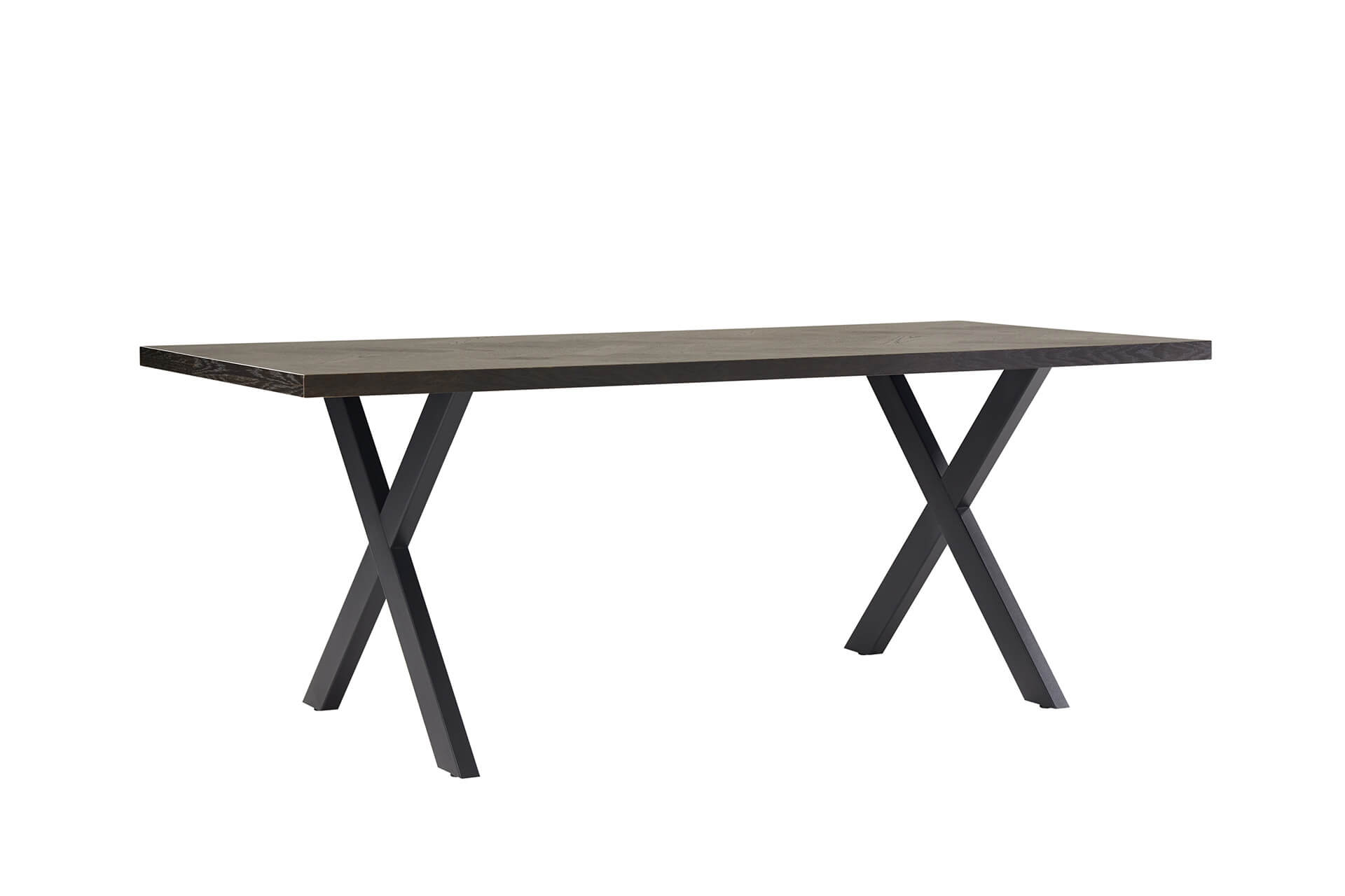 Nate Dining Table 1800 in Smoked Oak offers a contemporary design. Crafted from engineered wood with a smoked oak finish, it features geometric patterns that lend a distinctive, stylish touch to your dining area. The table is supported by sleek black powder-coated metal legs, adding a sophisticated contrast and ensuring durability. Its clean lines and geometric detailing make it a striking centrepiece, perfect for modern dining spaces.