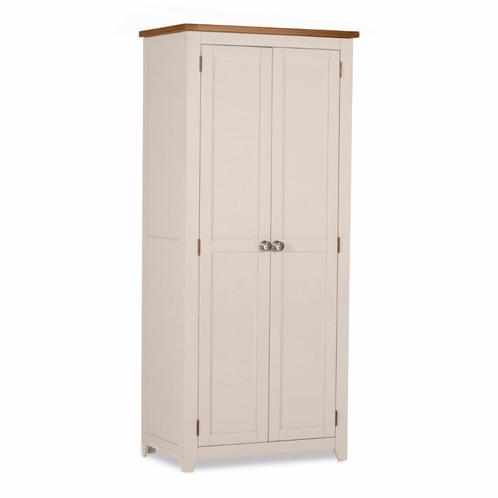 The Stylish Kylie bedroom range has a silent grey finish with oak trims and chrome knobs.