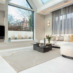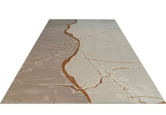 The Emma is a modern rug that draws attention with its dramatic design, flair and uniqueness. The mixture of different elements in brown and gold creates a beautiful art piece that can be used in all areas of your home. This rug will add a touch of luxury to any room in your home.