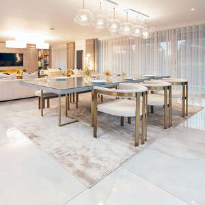 A rug with a swirling design of natural browns and gold, the Helen rug is sure to be the center of any room. The sophisticated neutral tones blend in well with any decor and make it an easy addition to your home.
