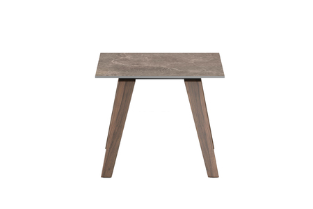 The Axton Lamp Table in Latte by VIDA combines elegance with practicality. Crafted from bird wood with a dark brown walnut veneer, it exudes natural charm. Its sintered stone tabletop is heat and cold-resistant, waterproof, scratch-resistant, and stain-proof, making it easy to maintain and clean.