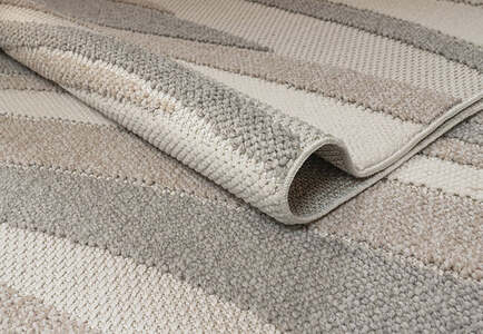 The Marie rug is a beautiful addition to your home. Its wave design in soft greys, browns, and taupe makes it easy to pair with a variety of existing decor. It is durable enough for use on the patio or around the pool, yet classy enough to add style to any room in the house.