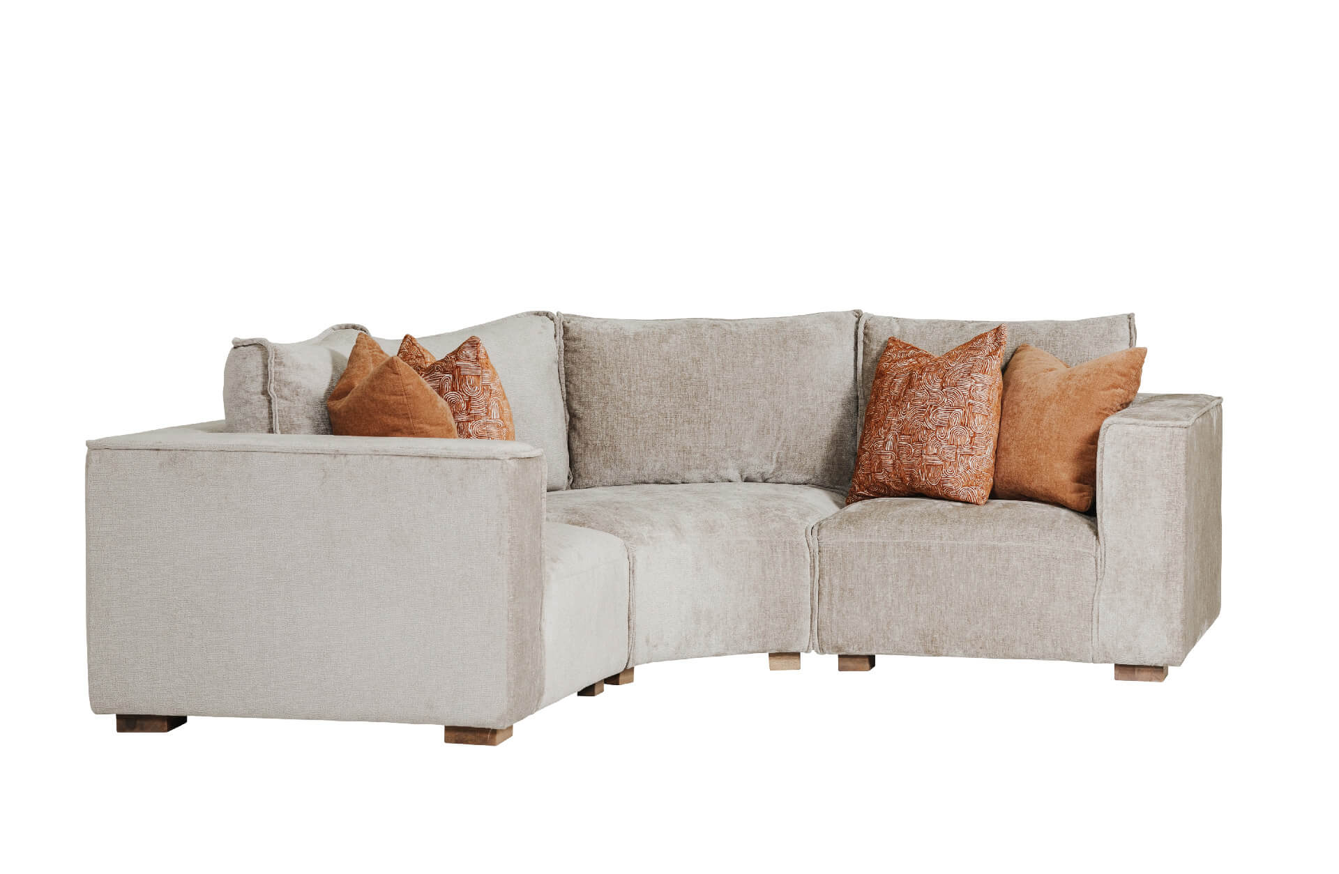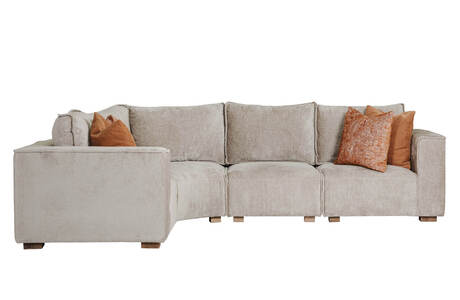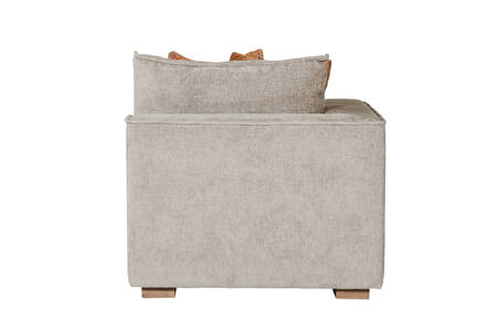 Bodhi Modular Arm LHF in Mink offers a versatile and stylish design with loose back cushions and scatter cushions for added comfort. The modular layout allows for flexible configurations, making it a perfect fit for any living space.