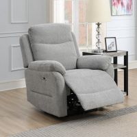 Elevate your living room style with the Keegan, a soft fabric motion sofa that will take lounging to the next level ! The chrome finish button functions on the side combined with the extra padded headrest and arms makes comfort effortless and exceptional support while relaxing.