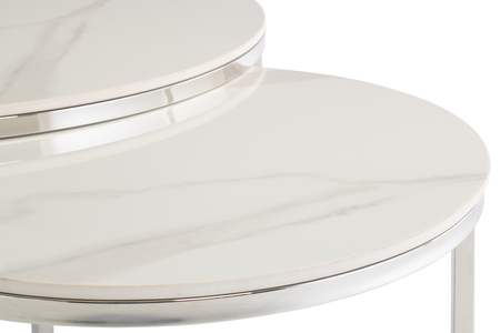 The Hanson’s white Italy white top offers contemporary style with a modern elegance. Inspired by Carrera marble, the design is both unique and highly versatile and perfectly coupled with a polished chrome frame