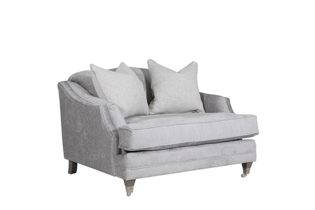 Belvedere Snuggle in Silver – a cozy retreat for your living space. Crafted with a textured chenille velvet base and adorned with castor legs, this snuggle exudes elegance and sophistication. Featuring a mix of boucle and textured fabrics, adding depth and style to your seating area.