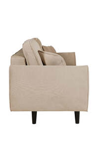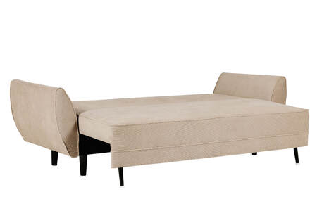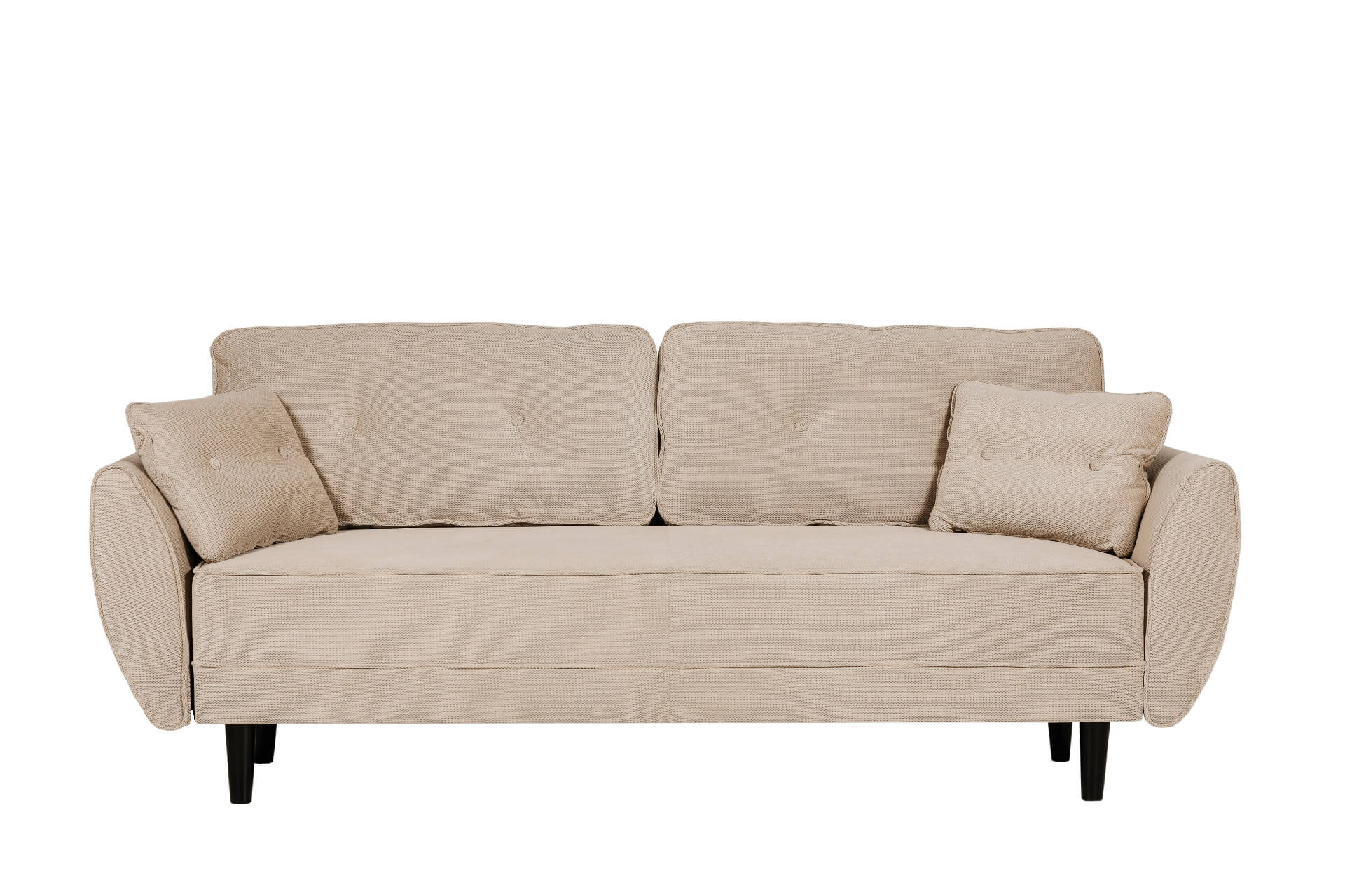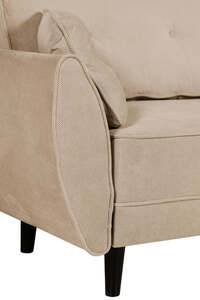 Sawyer Sofa Bed in Natural – a versatile and stylish addition to your home. With its Click-Clack function, this sofa effortlessly transforms into a bed, providing comfort and convenience for overnight guests. Crafted from a neutral fabric, the Sawyer Sofa Bed complements any decor scheme with ease. Its button back cushions add a touch of elegance, while the solid black wooden legs offer stability and a hint of mid-century design flair.