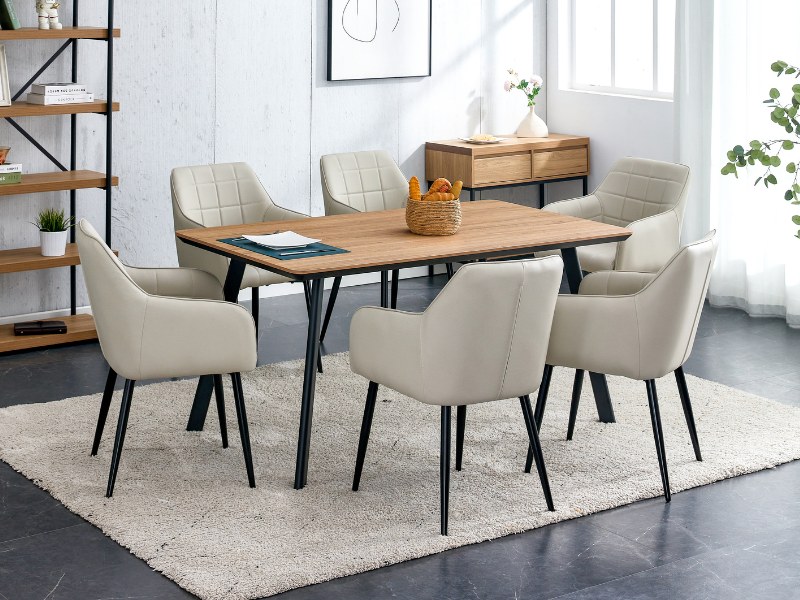 The Erik dining tables epitomise industrial style with their striking design, featuring robust metal legs that provide both strength and a bold visual statement, perfectly complemented by a solid wood top for added warmth and character.